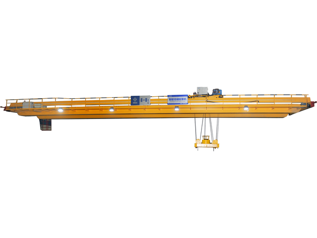 該產品采用四梁四軌雙小車結構型式,主體結構在垂直及水平載荷作用下,具有很好的強度和剛度。大車車輪采用20輪布置方式,力學模型簡單,輪壓分布均衡,可有效降低廠房鋼結構造價。 整機采用調速控制系統,運行平穩、安全,起、制動沖擊小,同時起升調速裝置采用一用一備系統,當一套裝置發生故障時,可實現安全、快速切換,保證起升系統正常運行。 主要零部件采用國內最新最先進技術及制造工藝,車輪組采用最新系列標準45°